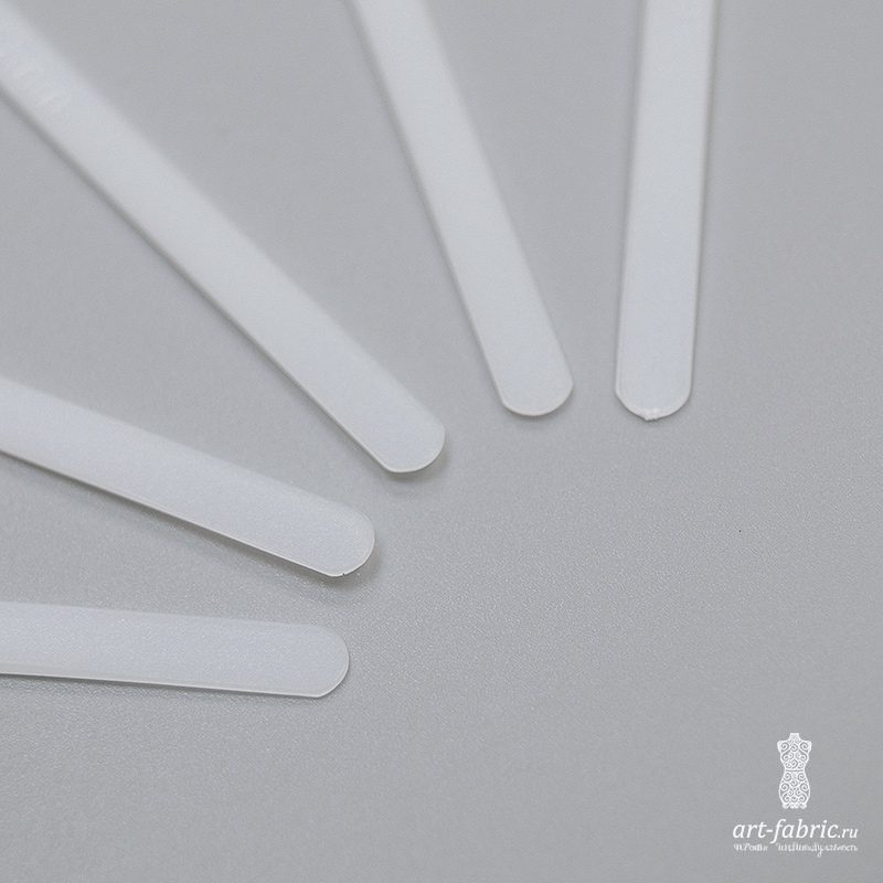 Боковая косточка для бюстгальтера из пластика, толщина косточки 1.2 мм, к концам до 0.5 мм, ширина косточки 4.8 мм.