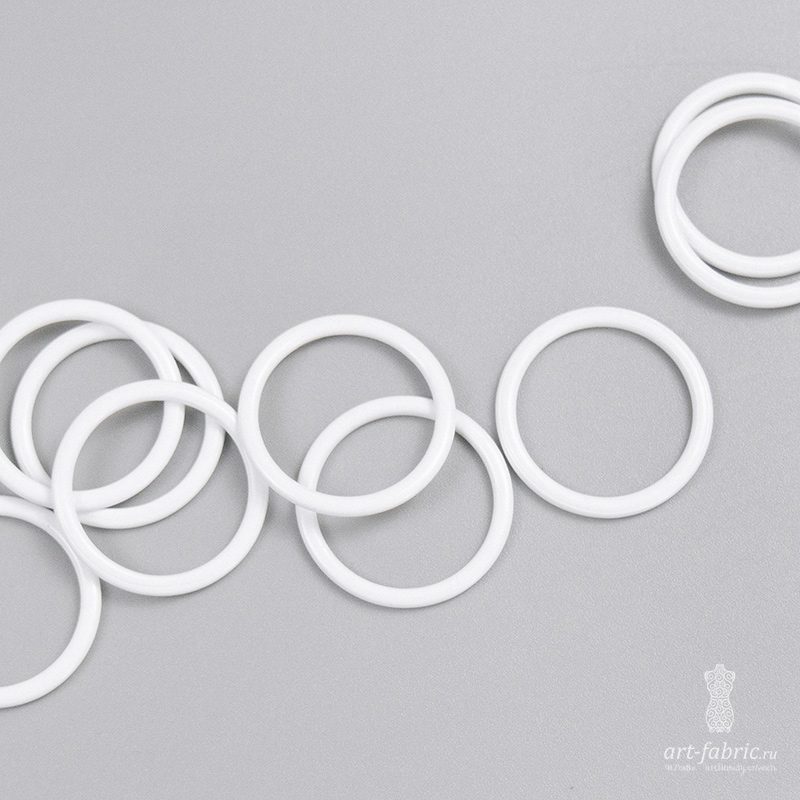 Металлическое кольцо белого цвета. Кольцо покрыто эмалью, ширина внутреннего отверстия 15 мм.