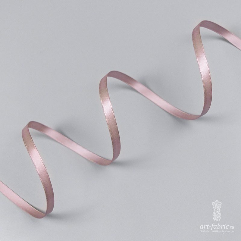 Двухсторонняя атласная темно-пудрового цвета с легким холодным подтоном - ширина 6 мм, достаточно прочная и пластичная.