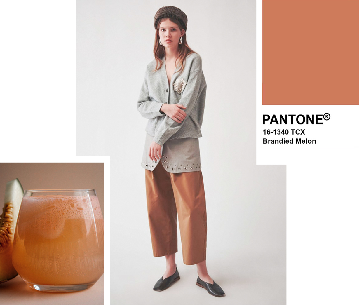 «Дыня в бренди» - согласитесь, название данного пантона звучит уже как что-то необычное и интригующее. Он обладает приятным неприторным рыже-карим оттенком с сочно-фруктовым флёром, которым так и хочется оживить осенний лук.