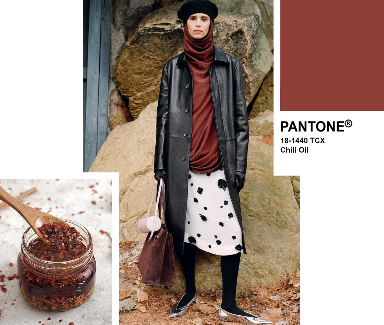 Еще один, достаточно характерный для осени пантон – «Масло чили». Он отличается от предыдущего карего большей пикантностью и выраженным красно-рыжим подтоном.