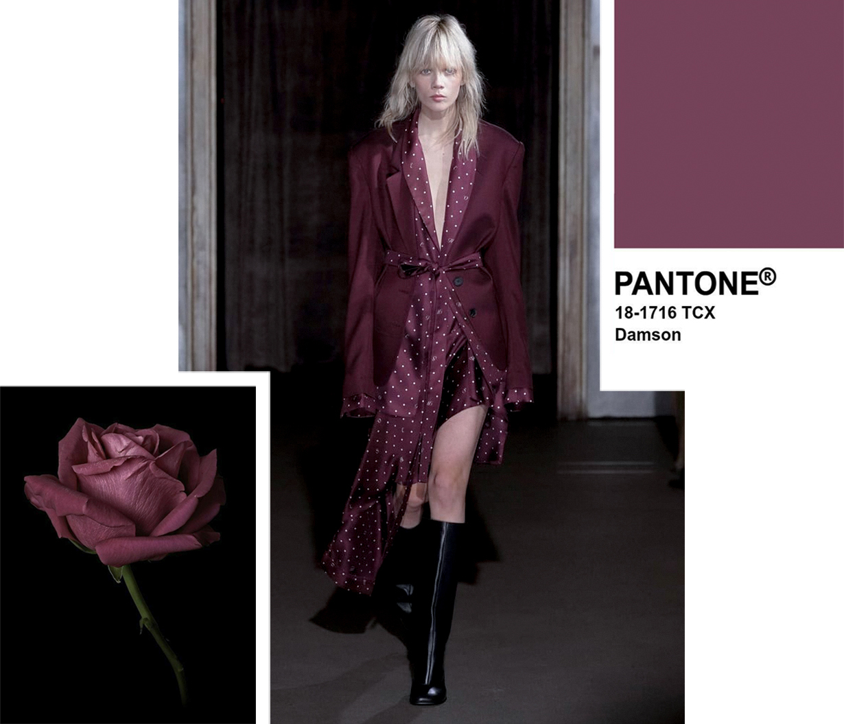 «Дамсон» - означает название одного из сортов сливы и олицетворяет бордово-пурпурный цвет с дымчатым подтоном, вносящим в образы некоторую легкость и загадочность. Вполне логично, что данный пантон связывают с особой чувственностью и шармом.