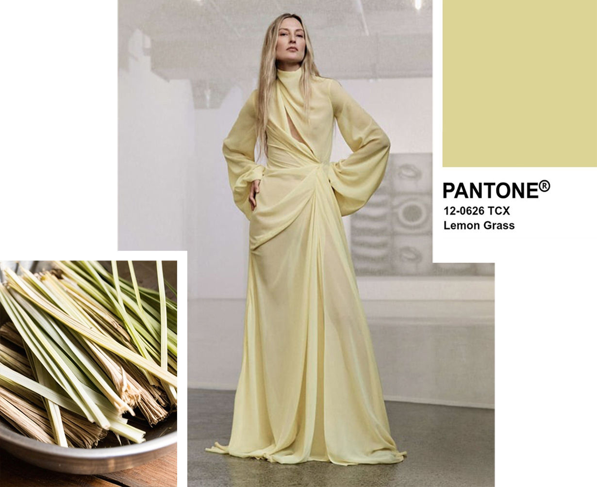 Первым в нашем обзоре выступает пантон «Лемонграсс» - это освежающий туманно-желтый оттенок с зеленым подтоном, ассоциирующийся с природой и пробуждением жизненных сил.